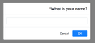 プロンプトダイアログは、コールバックの設定が必須です。コールバック関数では、ユーザー入力をコールバック値で取得することができます。ダイアログをキャンセル、またはCancelボタンをクリックした場合はnullになります。