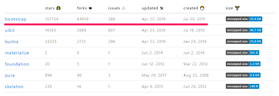 圧倒的といえるほどのダウンロード数です。新進気鋭の有望なCSSフレームワークがリリースされても、Bootstrapが依然としてトップに立っていることがわかります。