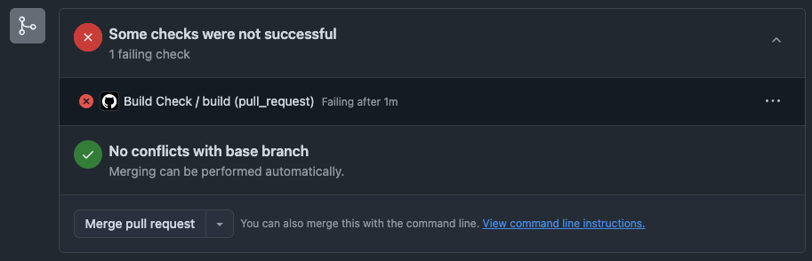 ビルドに成功した場合は下記の表示となり、マージが可能です。マージが完了されると自動デプロイが実行され、数分後に本番環境に適用されます。