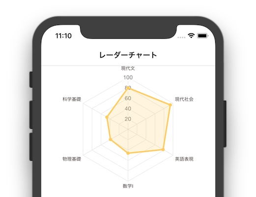 このサンプルは、以下のようなレーダーチャート描画を想定している。